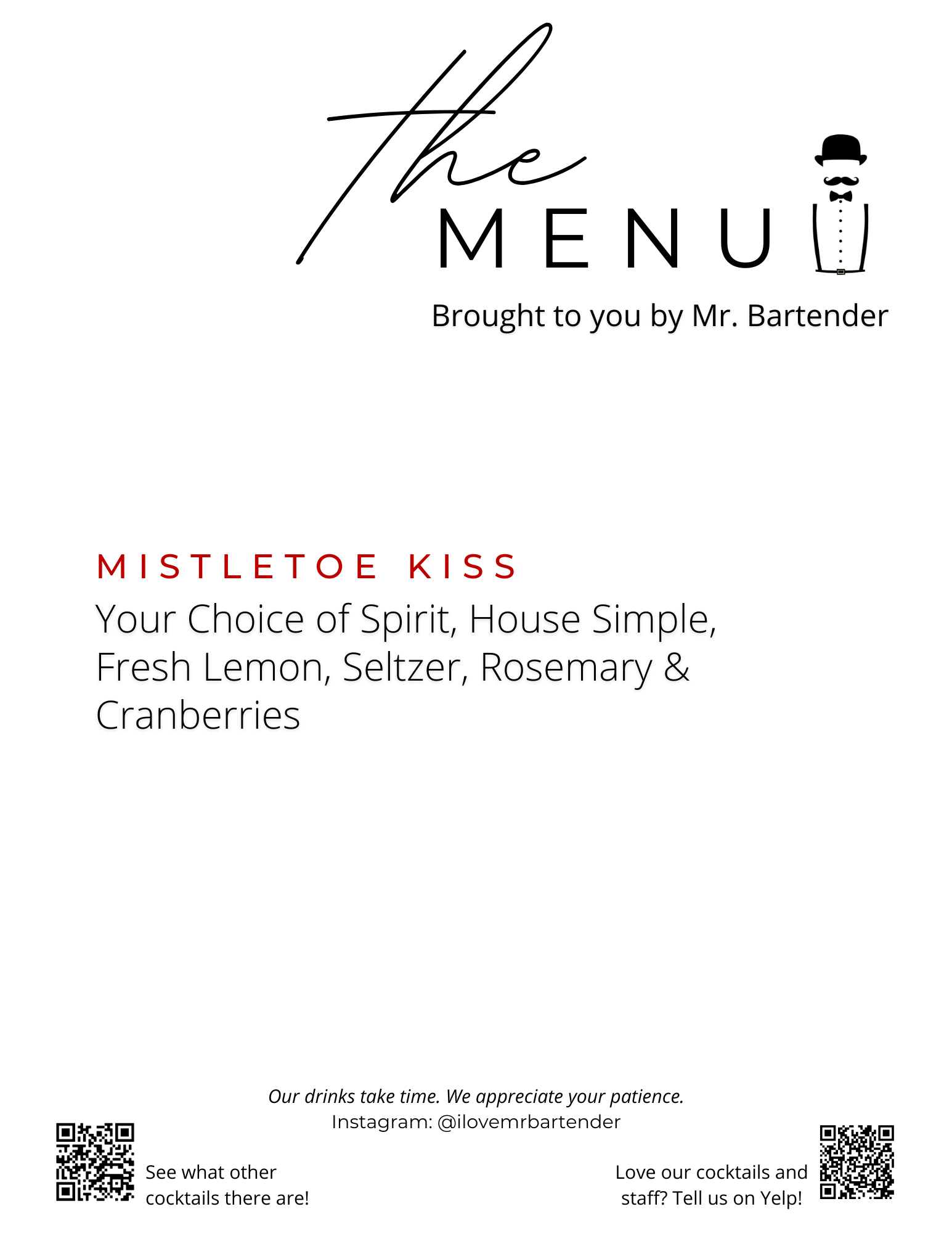 Mr. Bartender Full Menu