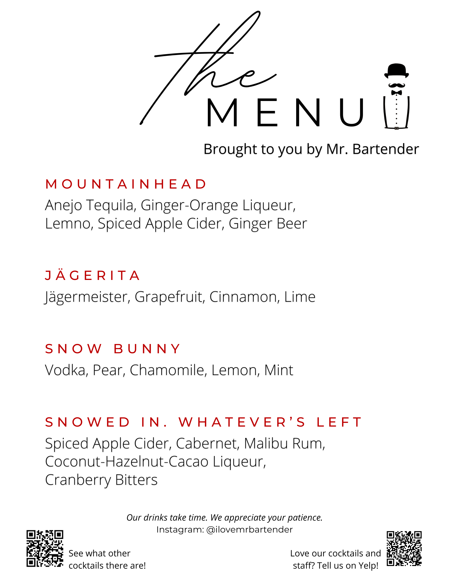 Mr. Bartender Full Menu